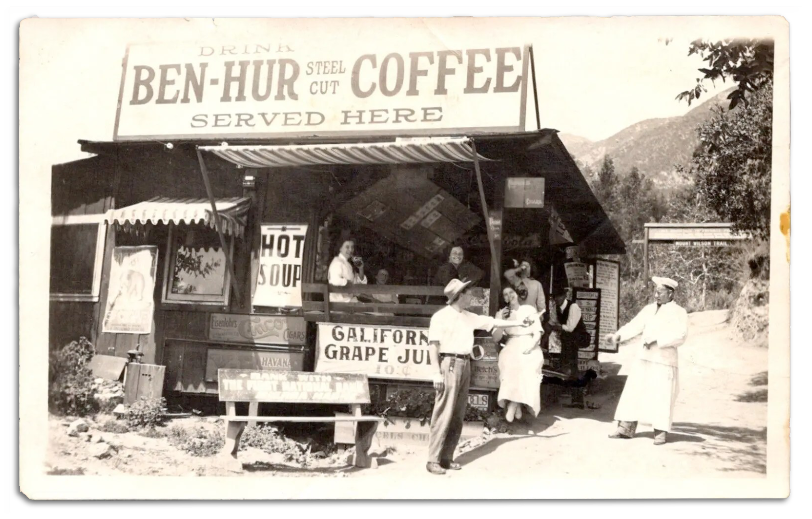 The Lunch Stand was a place to get food and drink and for hikers to check items. Some supplies were sold to hikers who planned on camping in the mountains. It featured an open air counter which would later be enclosed.