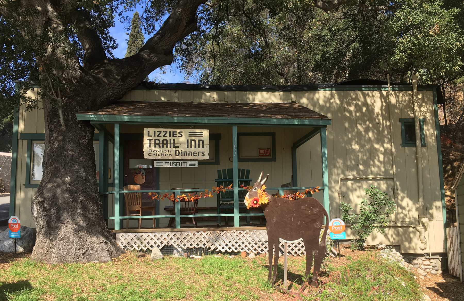 Lizzie’s today is a place where the public can learn about life in the last century and hear about the mountain resorts that were scattered in the hills above Sierra Madre. Weary trail travelers can “sit a spell” on the porch to relax and even read or watch the sunset, and old timers can gather on Saturday mornings to swap stories about the trails, the mountains, and the history of our town.